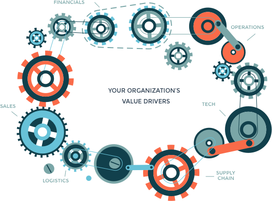 Value Drivers are what's hidden behind your income statement or balance sheet yet they differentiate you from the rest. Execution on Value Drivers determines your economies of scale, customer satisfaction, innovation, branding, partnerships, process, team morale, communication implicitly form a significant portions of your overall cost structure. Thus the measure of these Value Drivers occurs in dollars as well as proprietary measures and KPI’s native to your organization, we take this into account.